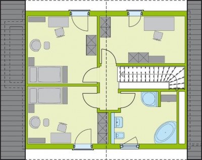 Im Dachgeschoss befinden sich drei helle Schlafzimmer und ein schönes, komfortables Bad.