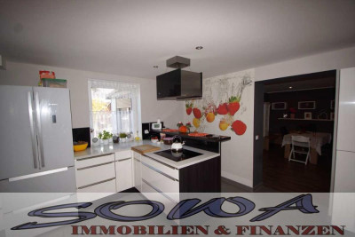 Das Erdgeschoss gestaltet sich als offenen Wohn ? und Essbereich mit einer modernen Küche inklusive Marken Elektrogeräte. Einen großen Spielraum neben dem Wohnzimmer bietet die Möglichkeit den Kindern ungestört zu spielen.