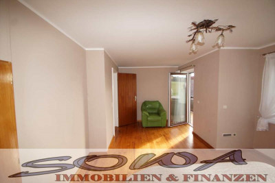 Durch das Wohnzimmer gelangt man auf die schöne und sonnige Terrasse mit Ausblick auf Sankt Wolfgang.