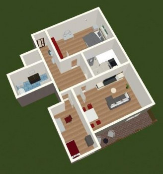 Die Wohnung besteht aus einem großzugigen Flur, ein Wohnzimmer, ein Schlafzimmer, ein Kinderzimmer, ein Badezimmer und einer Küche. Der Balkon ist groß und auf der Südseite.