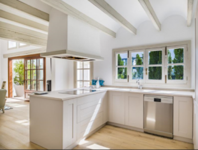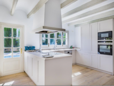 Die Auslandsvilla die aktuell in Palmanova verkauft wird, verfügt über einen großzügigen Wohn- und Essbereich mit einer amerikanischen Küche. Diese Küche ist schon fertig eingerichtet. Die Küche ist sehr hell und bietet einen einfachen und konfortablen Zugang zu großzügig angelegten Garten mit Swimming-Pool. Insgesamt hat das Haupthaus vier Schlafzimmer. Zwei von diesen schönen Räumen haben zum Teil Meerblick und ebenfalls Bäder. Außerdem eine Suite, ein kleines Offices und eine Toilette für Gäste.