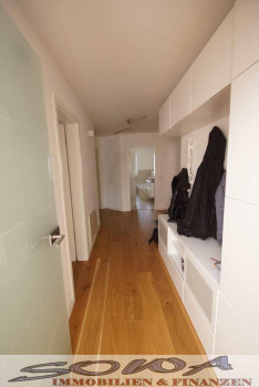 Die Wohnung überzeugt gleich am Eingang mit dem großzügigen lichtdurchfluteten Flur. Der Wohn-Essbereich beeindruckt mit einer stillvollen und neuwertigen Küche.