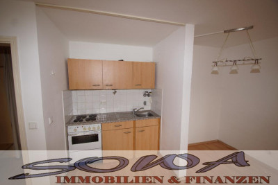 Es handelt sich hier um eine gemütliche 1 Zimmer ? Wohnung im 1.OG mit Badezimmer und Wohn / Schlafzimmer mit Kochnische, Einbauküche und Schlafnische.
