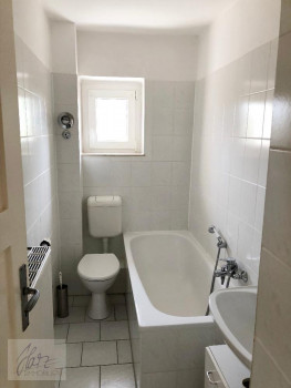 Diese gemütliche 1 Zimmerwohnung mit Blick ins Grüne befindet sich im 2. Obergeschoss des Objektes. Das Wohnzimmer ist mit Teppich-Fußboden ausgestattet. Der Flur und die Küche besitzen PVC-Belag. Das geflieste Badezimmer besitzt eine Badewanne, Waschtisch, WC und Fenster. An allen Fenstern sind Aussenjalousien angebracht, welche für eine angenehme Nachtruhe sorgen. Ein Kellerraum ist der Wohnung zugehörig. Stellplätze sind im Objekt ausreichend vorhanden und können kostenlos genutzt werden. Da wir Sie bei Ihrem Um- und Einzug natürlich unterstützen möchten, können Sie zwischen einen neuen Flachbild-TV oder einer Einbauküche wählen.