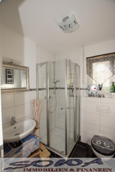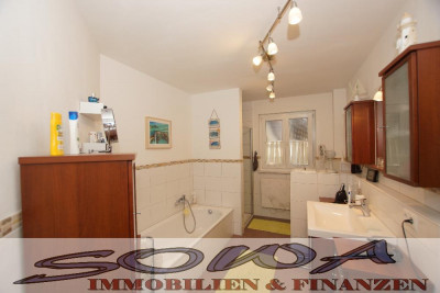 Das Tageslichtbadezimmer ist mit Wanne, 90 cm x 90 cm Dusche, Toilette und Waschbecken ausgestattet. Ein Wäscheabwurfschacht in den Waschraum ist vorhanden. Bodenheizung.