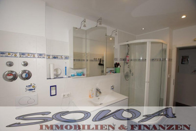 Vom Flur aus gelangen Sie vorne links in das Schlafzimmer, dass mit einem eigenen Badezimmer mit Dusche ausgestattet ist. Vorne rechts befindet sich der Wohn/Essbereich mit einer schicken Einbauküche und einem Balkon. Vorne links befinden sich noch zwei weitere Schlaf/Kinderzimmer, die aber auch als Büroräume etc. genutzt werden können. Vorne rechts nach dem Wohn/Essbereich folgt das Badezimmer, dass eine Dusche sowie auch eine Eckbadewanne besitzt. Ganz hinten rechts ist ein weiteres Schlafzimmer vorhanden. Am Ende des Flurs ist das separate Gäste-WC. Im Flur auf der rechten Seite befindet sich Platz für eine Waschmaschine und einen Trockner.