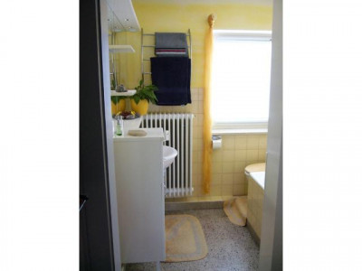 PROVISIONSFREI: 2,5 Zi- Wohng., 72 qm, 1. Etage, Balkon, Garage, bevorz., ruhige LageWohnung in Süd-West-Ausrichtung, sehr sonnendurchflutet,Wohnzimmer: 22.2 qm mit hochwertigem Thorma-Speckstein-Kachelofen,Schlafzimmer: Nord-Ost-Ausrichtung, 15,3 qm,Arbeitszimmer: 9,5 qm,in allen drei Zimmern Multi-Media-Anschluss: Telefon, Kabelfernsehen, InternetFlur: 8,6 qm,alle diese Bereiche mit neu- und hochwertigem „Elesgo“-Laminat, verleimt!, Korkdämmung versehen,Bad (4,8qm) und Küche (10,2 qm) mit echtem Terazzo,Küchen- und Badblock mit ergonomischer, rückenschonender Arbeitshöhe, beide neuwertig,Balkon: 5,4 qm, Weitsicht,Garage im Kellergeschoss, Kellerraum und Dachbodenabteil(Eigennutzung),Fahrradkeller, Waschmaschinenkeller,Trockenboden (Mitbenutzung),Gesundes Wohnklima, mineralischer Wandputz (ohne Tapete!) mit ökologischer Wandlasur auf Basis von Mineral-Pigmenten und Bienenwachs, die originalen Kacheln in Bad (gelb) und Küche (blau) konnten in ihrem sehr guten Zustand erhalten werden,Nichtraucher-Wohnung und -Haus,neue Sicherheits-Türsprechanlage,Energiepass: Wert: „GUT“,Heizkörper in allen Räumen durch Rippenbauweise mit Strahlungswärme-Funktion, kein „Zugluft-Gefühl“,eigene Warmwasser-Bereitung (Gas):keine Legionellengefahr und keine weiteren Überprüfungs- und Wartungskosten,Wohngeld: 255.-€/Monat, darin sind 21 Einzelposten enthalten, u.a. Heizung, Gartenpflege, Winterdienst, Verwalterkosten, Instandhaltungsrücklage, etc., es kommen nur noch Strom/Gas mit z.Zt. 25.-€/Monat und 14,50€ Grundsteuer/Monat hinzu.Provisionsfrei sofort beziehbar, wenn Ihnen die Wandgestaltung gefällt(s.o.), keine Renovierung erforderlich,durch die Nähe zum Krankenhaus IZ evtl. interessant für Dialyse-Patienten?,