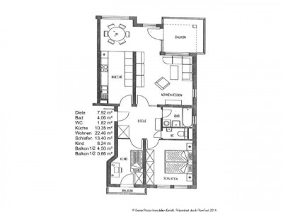 Diese für ihre Größe optimal geschnittene Wohnung befindet sich in der 2. Etage eines 1995 errichteten Mehrfamilienhauses. Das Gebäude wurde seinerzeit mit einem schlichten aber zeitlos schmucken Treppenhaus und einer Tiefgarage nebst Kellerräumen errichtet. Die Wohnung ist hier auch ohne Lift gut zu erreichen. In der Wohnung findet man 3 gutgeschnittenen Räume, ein Extra-WC, ein Bad mit Wanne und Fenster und einen großen überdachten Balkon mit Blick bis zu den Dresdner Elbhängen. Hervorzuheben ist hier noch die direkte Verbindung zwischen Küche und Wohnzimmer, die in natura eine großzügigere Raumgestaltung zuläßt als auf dem Grundriß ersichtlich. Die Räume sind bis auf das Kinderzimmer/Büro mit Laminat ausgelegt und Küche und Bad natürlich gefließt. Die Wohnung ist momentan vermietet, eigenet sich also für einen Kapitalanleger aber auch für einen Selbstnutzer ist sie dank der Lage und des guten Zuschnittes sehr interessant!