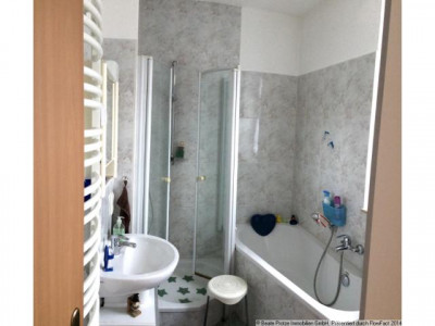 Die Wohnung befindet sich im Obergeschoß eines kleinen Mehrfamilienhauses mit klassischer Klinkerfassade. Das Haus wurde im Jahre 2001 komplett saniert.Diese Wohnung wurde ursprünglich als 3 Zimmerwohnung errichtet aber auf Wunsch der jetzigen Mieter hat man einen Teil der Zimmertrennwand entfernt und damit ein großes Wohnzimmer geschaffen. Bei Bedarf kann dies aber unkompliziert wieder zurückgebaut werden. Besonderheiten der Wohnung sind die Wohnküche und das Bad mit Fenster und Wanne/Dusche. Weiterhin gehören zu dieser Wohnung ein Kellerraum, 2 Garagen und ein eigener großer Gartenanteil (ca. 100 m²)