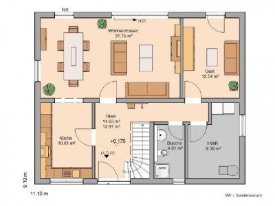 Ideal für Familien und alle, die viel Platz brauchen: Auf sechs Zimmern bietet das Haus Signum viel Freiraum zur Entfaltung und maximale Geborgenheit. Im Erdgeschoss befindet sich die große Küche mit Blick zur Straße und das Wohn- und Esszimmer. Große Fensterelemente laden zum Gang in den Garten ein. Zudem bietet die Wohnebene ein Gästezimmer, ebenfalls mit Zugang zum eigenen Garten, ein Duschbad und einen geräumigen Hauswirtschaftsraum für die Technik. Das Dachgeschoss beherbergt zwei Kinderzimmer, ein Elternschlafzimmer und - zentral gelegen - das Home-Office zur individuellen Gestaltung. Die persönliche Wohlfühloase: das herrlich große Familienbadezimmer, in dem sich die ganze Familie entspannen kann! In der Variante "Signum Plus" kann das Haus um eine Gaube ergänzt werden. Diese bietet große Fensterflächen für einen einmaligen Blick ins Grüne. Der optionale Balkon bietet zusätzlichen Freiraum für die Bauherren.Dieses Haus wird nach Ihren individuellen Wünschen geplant und ausgestattet!