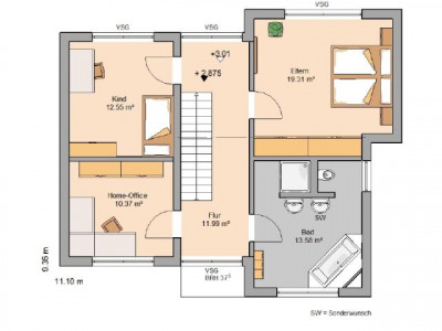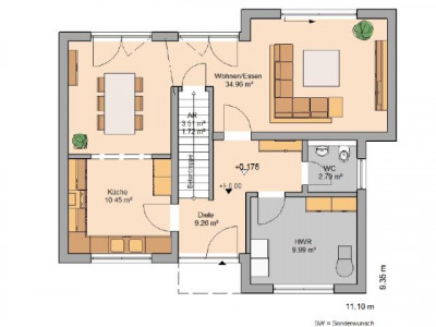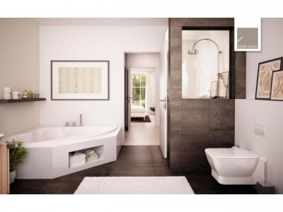 Das Kern-Haus Modus inspiriert durch seinen Bauhausstil, bei dem klare Formen dominieren. Die reduzierte Architektur lenkt den Blick auf das Wesentliche. Das Bauhaus Modus erfüllt mit seiner Grundrissvariante und der ausdrucksvollen Gestaltung alle Wünsche - und sieht dabei richtig gut aus. Im Zentrum des Hauses steht die geradlinige Betontreppe, die unterhalb einen praktischen Stauraum bietet. Um diese Treppe befinden sich die Wohnräume des Erdgeschosses. Die offene Raumstruktur verbindet dabei Kochen, Essen und Wohnen - eine Abtrennung dieser Räume ist ganz individuell nach Ihren Wünschen möglich. Die bodentiefen Fenster sorgen dabei für einen besonderen Lichteinfall im Haus. Im Obergeschoss befinden sich die Schlafräume der Bewohner. Der großzügige Flur verbindet Kinderzimmer, Home-Office, Eltern-Schlafzimmer und Familienbadezimmer zu einer Einheit. Dieses Haus passt zu Ihnen - ein Leben lang!Dieses Haus wird nach Ihren individuellen Wünschen geplant und ausgestattet!