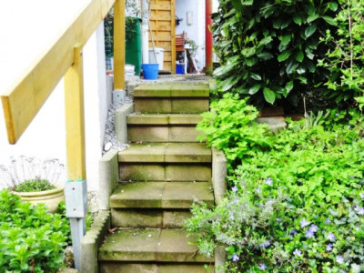 Eine Wohnung zum Verlieben! Ideal für ein bis zwei Personen. Genießen Sie Ihr kleines Reich auf den zwei Terrassen. Natürlich können Sie daraus auch eine große Terrasse gestalten. Die jetzigen Mieter haben den Randbereich liebevoll bepflanzt, sodass es auch einen kleinen Garten gibt. Hier können Sie in Ruhe entspannen. Das Haus mit insgesamt 8 Wohneinheiten besteht aus einem älteren Gebäude (BJ 1955) und einem neueren Ausbau (BJ 1990). Übrigens: die lästige Treppenreinigung des Hausflurs und Schneeschippen im Winter sind passé.