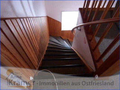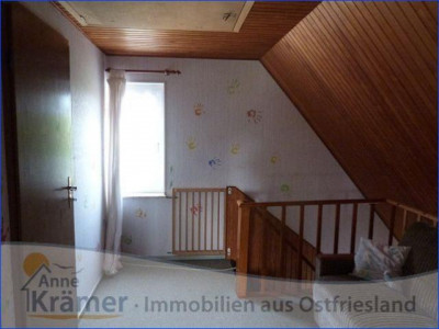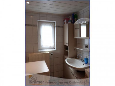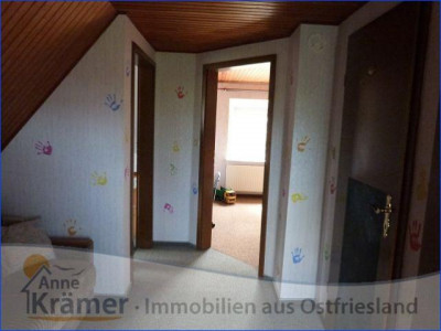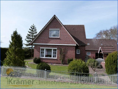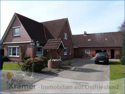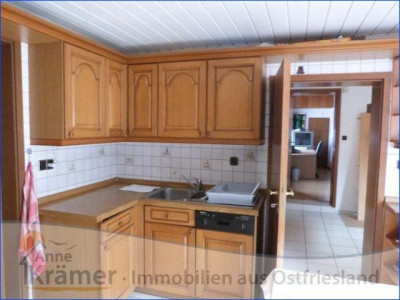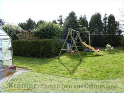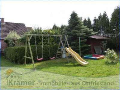 Die hier angebotene Immobilie stammt aus dem Jahre 1962 und liegt in einem kleinen Ort nicht weit von der ostfriesischen Nordseeküste. Das Einfamilienhaus bietet Platz für eine Familie mit zwei bis drei Kindern. Im Erdgeschoss befinden sich ein Schlafzimmer, ein Wohnzimmer mit echtem Parkettboden und angrenzendem Esszimmer oder Büro, die Küche mit EBK, ein Hauswirtschaftsraum und ein Bad mit Dusche und Wanne, sowie ein Gäste-WC mit Urinal. Im Dachgeschoss sind zwei Kinderzimmer, ein Gäste-WC und eine Abstellkammer untergebracht. Die mit Gas betriebene Heizungsanlage stammt aus dem Jahr 1986 und wurde 2011 mit einer neuen Pumpe versehen. Sie wird regelmäßig gewartet und weist gute Werte auf. Die doppelt verglasten Kunststofffenster stammen aus den Jahren 1978 bis 1995, wobei die Vorderfront des Hauses (Wohnzimmer und Diele) mit gewölbten Sprossenfenstern versehen ist. Die hauseigene Kläranlage wurde im Jahr 2012 erneuert. An die Garage mit Werkstatt schließt sich ein Carport mit Sondermassen von 3 mal 5 Metern an, welcher sich hervorragen für das unterstellen eines Wohnmobils eignet. Die Fußböden der Immobilie sind mit PVC, Teppichboden und Laminat, sowie Fliesen und echtem Parkett ausgestattet. Außerdem sind rundum Außenrollläden angebracht. Das 1470 m² große Grundstück besitzt einen mit Rasen pflegeleicht angelegten Garten. Hinter dem Haus ist ein Gartenteich mit allerlei Wasserpflanzen und Fischbestand angelegt. Zur Immobilie gehört noch ein voll isoliertes Gartenhaus, mit Elektroanschluss und fließendem Wasser. Hier lässt es sich auch an kälteren Sommerabenden aushalten. Auch die außergewöhnliche Baumbepflanzung ist beachtenswert.Ein Energieausweis liegt vor!