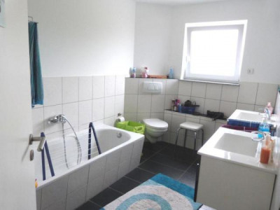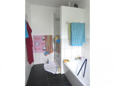 Porz-Zündorf, in absoluter ruhiger Wohnstraße wird hier eine komfortable Neubauwohnung zur Anmietung angeboten.Die Wohnung besteht aus- einer Diele- einem sehr hellen geräumigen Wohn-/Ess-/Küchenbereich -die Einbauküche kann übernommen werden-- hier schließt der große Balkon mit Blick in den Garten an- Gäste WC- Badezimmer mit 2 Waschbecken, Dusche, Badewanne und Fenster- Schlafzimmer- 2 KinderzimmerDie gesamte Wohnung ist mit sehr hochwertigen Fliesen ausgelegt weiterhin befinden sich in den Decken Einbaustrahler welche unterschiedlich geschaltet werden können, je nach Bedarf.Eine sehr sparsame Fußbodenheizung sorgt für behagliche Wärme. Die Fenster sind rundum mit elektrischen Rollläden versehen.Natürlich gehört ein Kellerraum zur Wohnung wobei auch dieser wie das ganze Haus mit hochwertigen Fliesen im Granit Design ausgestattet ist.Für die Wäsche steht Ihnen im Gemeinschaftswaschkeller eine Anschlußmöglichkeit für Waschmaschine und Wäschetrockner bereit.Für ihren PKW können Sie direkt vor dem Haus einen Stellplatz für 25,- € mieten.Weitere Informationen zum Energieverbrauchsausweis: Baujahr: 2012, Energieeffizienzklasse: C