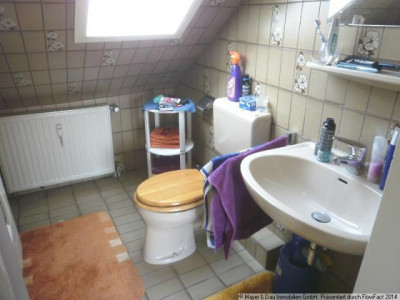 Schicke 2 ZKB Wohnung mit Balkon in Rastede Diese Dachgeschosswohnung befindet sich in der 2.Etage in einem 6- Parteienhaus. Das großzügige Wohnzimmer ist mit hellem Laminat verlegt worden und mit einem großen Dachfenster versehen. Ebenfalls befindet sich hier noch eine kleine Essecke. Die Decke, sowie teilweise die Wände sind Holzvertäfelt. Die Küche ist mit einer hellen Einbauküche mit beigefarbener Arbeitsplatte und hellen Bodenfliesen ausgestattet. Im Schlafzimmer lassen sich ein Bett sowie ein Kleiderschrank gut stellen. Das Bad verfügt über ein WC, einen Waschtisch und eine Dusche. Hier befindet sich ebenfalls der Waschmaschinenanschluss. Der Boden sowie die Wände sind mit Fliesen verlegt worden. Der Balkon ist von der Essecke aus zu betreten.Gerne vereinbaren wir einen Besichtigungstermin mit Ihnen, wir freuen uns auf Ihren Anruf. Als Ansprechpartner steht Ihnen Frau Katja Steinhausen unter 04402-83 083 zur Verfügung.