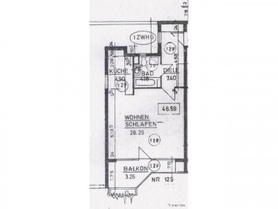 Dieses großzügige und helle 1,5 Zi.-Appartment befindet sich im 3. Obergeschoss eines 1977 erbauten Mehrfamilienhauses. Mittels Aufzug ist die Wohnung bequem zu erreichen. Die Wohnfläche beträgt ca. 46,59 m². Über die geräumige Diele, die mit einem schönen Schrank ausgestattet ist, gelangen Sie in das Wohn-/Schlafzimmer. Dieses verfügt über eine große Fensterfront mit Zugang auf den überdachten Balkon in südlicher Ausrichtung. Durch die großen Fensterflächen ist die Wohnung hell und lichtdurchflutet.Angrenzend und separat befindet sich die Küche mit einer praktischen Einbauküchenzeile.Das Tageslichtbad ist vor ca. 4 Jahren in weiß neu gefliest worden und mit Waschbecken, WC, Duschwanne, Handtuchheizkörper sowie WM-Anschluß gut ausgestattet.Die Wohnung ist mit schönem Laminatboden und Rauputz renoviert. Jeder Raum verfügt über Tageslicht. Sämtliche Fenster wurden erst kürzlich durch neue Kunststoffenster ersetzt.Für Ihr Fahrzeug steht Ihnen ein Außenstellplatz, für Sonstiges ein Kellerraum zur Verfügung. Die Nebenkostenvorauszahlungen betragen monatlich € 100,--. Darin enthalten sind sämtliche Kosten außer Strom und Telefon. Kabelfernsehen ist vorhanden. Im Haus gibt es einen Hausmeisterservice.