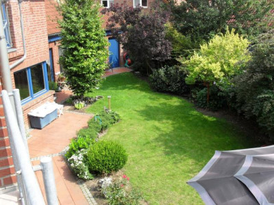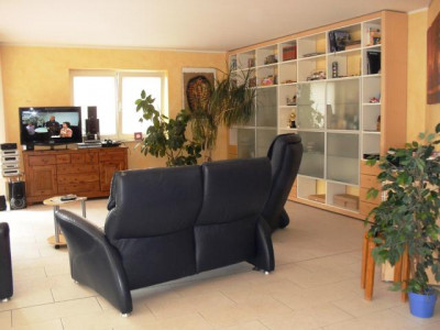 Dieses schöne Architektenhaus wurde 1996 in massiver Bauweise errichtet. Als Niedrigenergiehaus konzipiert wird es mit einer Gas-Brennwerttherme plus Warmwasserspeicher versorgt. Die Holzfenster mit Isolierverglasung haben abschließbare Fenstergriffe und befinden sich aktuell in einem guten Pflegezustand. Durch die bodentiefe Ausführung in Küche und Wohnzimmer erscheinen diese Räume besonders hell und freundlich.Insgesamt verteilen sich die 250m² Wohnfläche im Haupthaus auf 5 Zimmer und 3 Badezimmer erstreckt über Erd- und Obergeschoß.Der Einliegerbereich erstreckt sich ebenfalls über zwei Ebenen. Er kann entweder zum Wohnen oder zum Arbeiten genutzt werden. Ursprünglich waren die 75m² als Praxis geplant, aber auch eine Vermietung als Wohnung wäre problemlos machbar.Sind Sie neugierig geworden, dann vereinbaren Sie doch bitte eine Besichtigung.Qualität der Ausstattung: GehobenDenkmalschutzobjekt: Nein