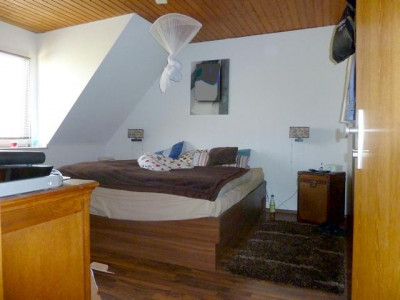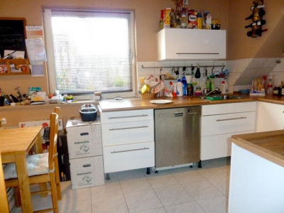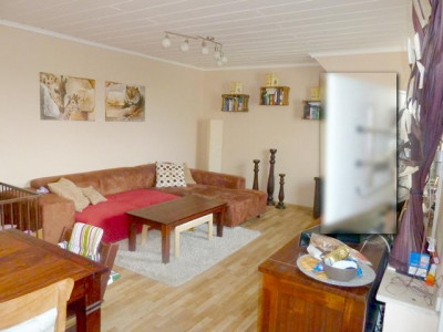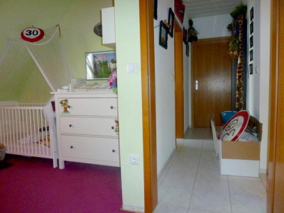 Die ca. 82m² große 3-Zimmer-Terrassen-Wohnung befindet sich in einem sehr gepflegtem freihstehendem Einfamilienhaus mit herrlichem Grünblick.Die Wohnung erreicht man durch das Treppenhaus, im Obergeschoss vor der Wohnungseingangstür befindet sich ein Zimmer das als Arbeits-, oder Schlafzimmer genutzt werden kann.Die Wohnug ist aufgeteilt in Diele, Küche, Schlafzimmer, Wannenbad und Wohnzimmer mit Zugang zur großzügigen uneinsehbaren Terrasse mit traumhaftem Blick ins Grüne.Qualität der Ausstattung: Normal