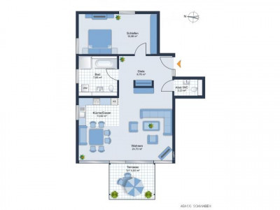 Das Angebot ist provisionsfrei!Neubau - Energieeffizienhaus 55, gemäß EnEV 2014... und dies in Verbindung mit zeitlos schöner Architektur sowie hochwertiger Bau- und Ausstattungsqualität. Wer würde sich hier nicht wohlfühlen? Die Wohnfläche ist für eine Zweipersonen Lebensgemeinschaft wie auch für eine Einzelperson geeignet. Es erwartet Sie eine großzügige Grundfläche, die von einem klaren Grundriss begleitet wird. Dieser sorgt für viele verschiedene Stellmöglichkeiten der Möbel und für helle, offene Räume.Der Eingangsbereich geht in eine helle Diele über - in deren Mitte ist Platz für Ihre Garderobe. Der Mittelpunkt der Wohnung ist der sonnige Wohn- Essbereich - er umfasst knapp 38 qm. Die offene Küche ist hier integriert.Vom Wohnbereich aus haben Sie einen angenehmen Blick auf die angeschlossene Terrasse. Sie ist westlich ausgerichtet und durch eine Grünfläche vergrößert sich der Gartenbereich optisch. Die Westseite ist mit einer raumhohen Verglasung geöffnet - elektrisch bedienbare Raffstoren ermöglichen auf Sie abgestimmte Verschattung und Lichtlenkung.Das Badezimmer hat Tageslicht und ist mit Badwanne, Dusche, Waschtisch und Toilette sehr gut eingerichtet.Das Schlafzimmer ist knapp 17 qm groß und rundet die Wohnfläche ab. Es ist mit Parkettboden ausgelegt - ebenso wie der Wohn- Essbereich.Ein weiteres Highlight dieser Wohnung ist der integrierte Abstellraum - er befindet sich links neben dem Eingangsbereich. Alternativ kann hier auch eine Gäste Toilette eingerichtet werden - das können Sie entscheiden.Zur Wohnung gehört ein Kellerraum. Fahrrad- und Trockenraum stehen der Wohngemeinschaft zur Verfügung.Ergänzend zur Wohnung ist ein Pkw Stellplatz in der Tiefgarage zu kaufen, für 19.500.- €.Die Wohnung ist für Selbstnutzer wie für Kapitalanleger gleichermaßen geeignet. Falls Sie selbst nicht einziehen möchten, sind wir Ihnen bei der Auswahl der passenden Mieter gerne behilflich.