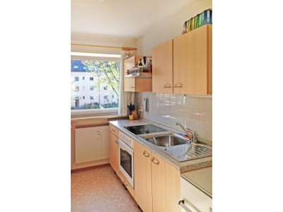 Die 2-Zimmerwohnung in der Riegerhofstraße 13 befindet sich im 1. Obergeschoss einer gepflegten Wohnanlage in einem familienfreundlichen Umfeld. Das Raumangebot der Wohnung umfasst eine helle Wohnküche, ein Schlafzimmer und ein gemütliches Wohnzimmer. Im Wohn- und Schlafbereich wurde ein PVC-Boden in Holzoptik verlegt. Die vorhandene Einbauküche ist Eigentum des Mieters. Das Badezimmer mit Fenster ist weiß gefliest und mit Badewanne ausgestattet. Der Waschmaschinenanschluss ist hier bereitgestellt. Zur Wohnung gehört ein Kellerabteil. Für die Hausgemeinschaft steht ein Trockenraum zur Verfügung. In der gesamten Wohnanlage wurden im Jahr 2004 die Fenster erneuert. Seit 2003 wird die Wohnung von einem solventen und zuverlässigen Mieter bewohnt und eignet sich insbesondere für Kapitalanleger, die eine langfristige und solide Investitionsmöglichkeit mit Potential suchen. Ein Fortbestehen des Mietverhältnisses ist aus Sicht des Mieters wünschenswert. Aus Gründen der Diskretion haben wir auf weitere Innenaufnahmen der Wohnung in unserem Exposé verzichtet.
