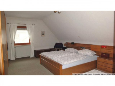 Das Objekt ist besonders gut geeignet für Familien mit Kindern, da sich für alles und jeden ein separates Plätzchen finden lässt. Ihrer persönlichen Entfaltung sind bei diesem Objekt fast keine Grenzen gesetzt. Das Haus wurde 1991 in Massivbauweise erstellt, verfügt über eine großzügige Doppelgarage, eine kleine Werkstatt, einen zusätzlichen Abstellkeller mit Vorraum, den kombinierten Wasch-und Heizungskeller mit separaten Heizöltanks (6.000 l) sowie einen separaten Müllbehälterraum. Ein großer Hof bildet den Zufahrts- und Zugangsbereich.Ein offenes Treppenhaus mit Massivholzstufen und Strukturputzwänden verbindet die Etagen des Gebäudes miteinander. Über den jeweiligen Flur erreichen Sie alle Räumlichkeiten.Auf der Wohnebene besticht zunächst das Wohnzimmer mit großen Glasschiebeelementen als Zugang zum Freisitz, der dank seiner Teilüberdachung den größten Teil des Jahres geschützt die frische Luft genießen lässt. Für die kühlere Jahreszeit sorgt neben der Ölzentralheizung insbesondere der holzbefeuerte Kaminofen für romantische Behaglichkeit. Isolierverglaste Holzfenster mit Kunststoffrollläden sorgen dafür, dass die Wärme lange in den Wohnräumen verbleibt.Essbereich und Küche sind in offener Bauart miteinander verbunden, so dass eine leichte Zugänglichkeit jederzeit gewährleistet ist. Auch der zweite Ausgang zum Freisitz ist äußerst praktisch z.B. für das gemeinsame Essen im Außenbereich. Die Bodenbeläge sind nutzungstypisch gewählt (z.B. Teppichboden in Wohn- und Schlafräumen, ansonsten zumeist Fliesenbelag) und grundsätzlich pflegeleicht.Im Dachgeschoss befinden sich 3 Schlafräume, ein Arbeitszimmer sowie das Familienbad, welches deckenhoch gefliest und mit Badewanne, Dusche, Doppelwaschtisch und WC ausgestattet ist. Die Dachschrägen auf dieser Ebene beeinflussen das Raumgefühl dank hohem Kniestock und großer Dachneigung positiv.Eine architektonische Besonderheit des Objektes liegt darin, dass alle Räume des Hauses über Tageslichtfenster verfügen. Die Immobilie präsentiert sich in einem äußerst gepflegtem Zustand.