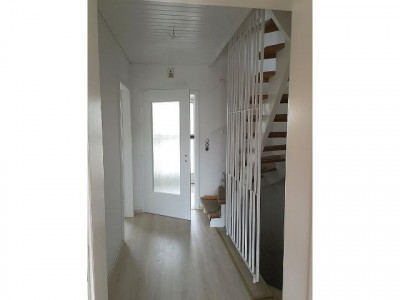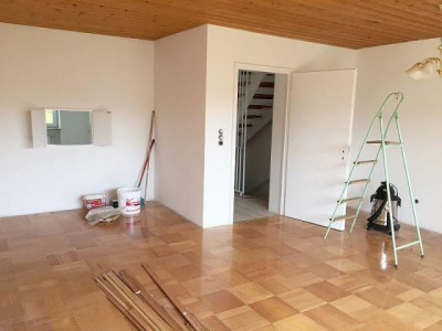 Das Haus wurde gerade umfangreich saniert. Es ist in einem sehr guten Zustand.Im Eingangsbereich ist ausreichend Platz für eine Garderobe und einem Schuhschrank. Im weiteren Verlauf der Diele gelangen Sie auf der rechten Seite in die Küche. Sie hat einen neuen Laminatboden. Die Durchreiche zum Wohnzimmer, die man bei Bedarf auch schließen kann, ist sicher sehr praktisch.Anschließend befindet sich das Wohnzimmer mit ca. 24 m². Durch seinen Schnitt kann es optimal eingerichtet werden. Vom Wohnzimmer gelangt man in den wirklich schnuckeligen Süd-Garten, der wunderbar bepflanzt ist. Sogar einen prächtigen Magnolienbaum, der in voller Blüte steht, gibt es hier.Im 1. Obergeschoß befinden sich das Elternschlafzimmer sowie ein Kinderzimmer und das komplett neue Badezimmer. Das Bad ist mit einer Badewanne und mit einem Fenster ausgestattet.Am Elternschlafzimmer grenzt der Balkon an, der zum Süden ausgerichtet ist. Von hier haben Sie einen traumhaften Blick auf eine sehr große Wiese mit altem Obstbestand.Weiter oben, im Dachgeschoß haben wir ein weiteres, großes Zimmer, ein kleines Zimmer sowie ein weiteres Bad. Dieses Bad ist nicht saniert jedoch vollkommen sauber und ordentlich.