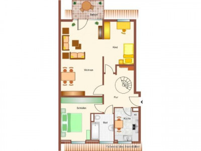 Großzügig geschnittene 3,5- Zimmer Maisonette Wohnung mit Empfangsdiele, Küche mit Einbauküche, Vollbad mit Wanne und Fenster, Wohn- und Esszimmer sowie Schlafzimmer. Eine Wendeltreppe führt zum großen 1-Raum-Studio im Dachgeschoss,