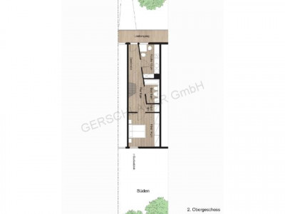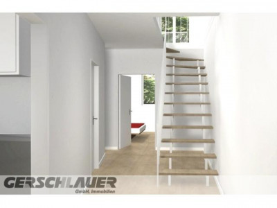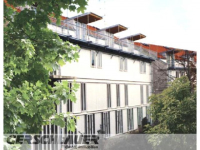 Die 1996 fertiggestellte Wohnanlage besteht aus zwei Baukörpern, die durch einen Gemeinschaftsbereich mit eingeschossigen Nebenanlagen verbunden sind, welcher als Durchgang von der Straße bis zur Gartenseite und zum Kinderspielplatz dient. Bei allen Wohnungen handelt es sich um südorientierte Maisonette-Typen mit einer inneren Erschließung. Die Dachterrassenwohnungen werden über eine Außentreppe und einen Laubengang im 2. Obergeschoss erschlossen. Hinter der Wohnungstüre empfängt Sie eine rund 5 m² große Diele mit viel Platz für eine Garderobe und einer zusätzlichen separaten rund 1 m² großen Abstellkammer. Neben der Diele liegt gleich die rund 13 m² große Küche mit einem schönen großen Fenster. Ebenfalls von der Diele aus erreichen Sie das rund 5 m² große Badezimmer. Neben diesem Badezimmer bzw. am Ende der Diele schließt sich das rund 14 m² große Schlafzimmer an, welches über ein besonders großes Fenster nach Süden mit Blick in die Gartenanlage des Wohnhauses verfügt. Über eine gerade Treppe in der Diele gelangen Sie in das Dachgeschoss dieser schönen Wohnung, wo Sie ein rund 23 m² großes Wohnzimmer mit hohem Sichtdachstuhl finden, welches sich über eine Fenster- und Ausgangsfront nach Süden weit und hell auf die rund 5 m² große teilüberdachte Süd-Dachterrasse hin öffnet, von der aus Sie einen sehr schönen Blick über die Gartenlandschaft der Wohnanlage genießen können. Zusätzlich viel Licht erhält das Wohnzimmer über ein großes Dachfensterband hoch oben, direkt auf der südlichen Ebene der Dachspitze. Zusätzlich finden Sie hier noch einen rund 5 m² großen, sehr praktischen Abstellraum (z.B. für die Polsterauflagen der Dachterrassen-Möbel). In dieser sehr schönen Wohnung fühlt man sich sofort sehr wohl.