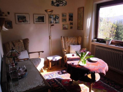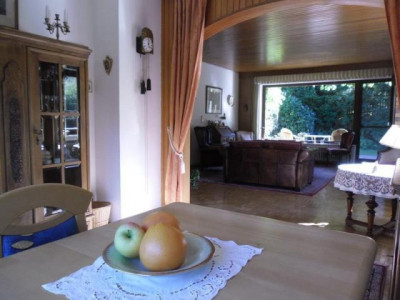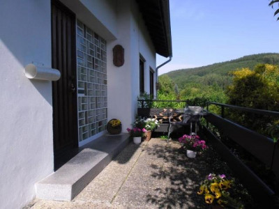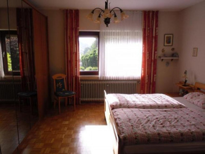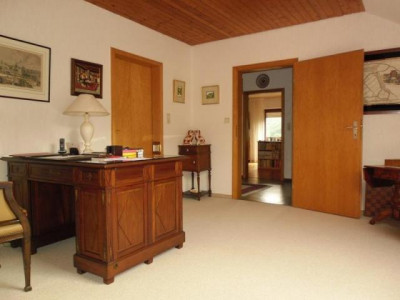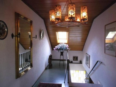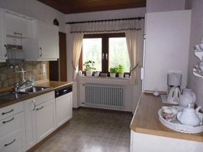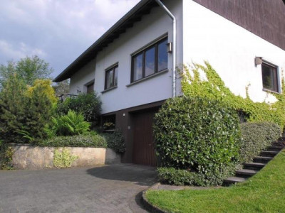 Das 1965 erbaute Landhaus befindet sich in einer schönen Ortshöhenlage mit einem traumhaften Panaromablick ins Kylltal am Fuße der historischen Bertradaburg.Die Ruhe vermittelt Ihnen zusätzlich das Gefühl, das Sie sich dauerhaft im Urlaub befinden.Bei dieser tollen Immobilie werden Sie sich immer dabei ertappen, wie Sie den Blick schweifen lassen und einfach nur genießen...Nach Betreten der Immobilie schreiten Sie über den hellen Marmorboden in das Entrée des Hauses. Linke Hand befindet sich ein Büro. Weiterhin befindet sich links ein Tageslichtbad ausgestattet mit eine Wanne und einem Waschmaschinenanschluss. Geradeaus vom L-förmigen Flurbereich befindet sich ein separater Flur. Von ihm aus links gelangen Sie in das geräumige Schlafzimmer. Rechts befindet sich ein innenliegendes, altersgerechte Duschbad. Von den wiederum L-förmigen Flurbereich aus besteht zudem die Möglichkeit in den Garten / Terrasse zu gelangen. Vom Eingangsbereich rechts befindet sich der offene, lichtdurchfluetete Wohn- und Essbereich. Für ein schönes Ambiente sorgt hier der offene Kamin, zusätzlich versorgt er Sie an kalten Tagen mit einer wohltuenden Wärme. Weiterhin gelangen Sie vom Wohnbereich aus links auf die Terrasse sowie in den Garten. In diesem uneinsehbaren Bereich lässt sich hervorragend in aller Ruhe vom Alltag abschalten. Der liebevoll gestaltete und gepflegte Garten ist eine echte Ruheoase. Ob Sie einfach nur die Ruhe genießen, mit Freunden Grillen oder mit Ihren Kindern spielen wollen, hier gibt es ausreichend Platz und jeder fühlt sich hier wohl. Vom Essbereich, sowie auch vom Flur aus gelangen Sie in die Küche, diese ist ausgestattet mit einer modernen, vanille farbene im Landhausstil befindlichen Einbauküche. Das Schlafzimmer, das Büro sowie der Wohn- und Essbereich sind ausgestattet mit einem hochwertigen Parkettboden. In das Obergeschoss gelangen Sie direkt nach Betreten der Immobilie rechte Hand über den ebenfalls mit Marmor belegten Treppenaufgang. Vom geräumigen Flurbereich im Obergeschoss linke Hand befinden sich 2 Schlafzimmer. Diese sind ausgestattet mit einem Teppichboden und einem Zugang zum Balkon. Highlight dieser beiden Zimmer ist der wunderschöne, unverbaubare Ausblick ins Kylltal.Ob im Frühling, Sommer, Herbst oder Winter hier erleben Sie einen traumhaften Ausblick in die Natur der facettenreichen Eifel. Geradeaus befindet sich ein Tageslichtbad, welches über eine Dusche verfügt. Rechts befindet sich ein großzügiges Schlafzimmer welches zudem noch über eine Ausbaureserve verfügt. Der von diesem Zimmer aus begehbare Speicher bietet Ihnen Stauraum, sowie die Möglichkeit das Schlafzimmer z.B. mit einem Ankleidezimmer auszustatten. Ein Spitzboden bietet Ihnen weiteren Stauraum. Das Kellergeschoss erreichen Sie über das rechts neben der Küche befindliche Treppenhaus. Die Immobilie ist komplett unterkellert. Im Untergeschoss befinden sich 2 nützliche Kellerräume (z.B. Weinkeller Vorratskeller etc.), der Öltankraum ( 7.000 L Tank), der Heizungsraum sowie die Garage. Die 2004 eingebaute Ölzentralheizung ist ebenfalls für die Warmwassererzeugung zuständig. Die im Haus befindliche Garage lässt Sie immer "trockenen Fußes" in das Haus gelangen.Diese vielseitige Immobilie bietet Ihnen zahlreiche Möglichkeiten und ausreichend Platz. Der moderne Schnitt, die lichtdurchfluteten Räume in Kombination mit dieser traumhaften Lage machen die Immobilie zu einem unvergleichbaren Angebot!