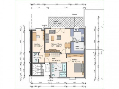 Die großzügige Maisonettewohnung erstreckt sich auf über 130 m² in einem 2-Familienhaus, welches sich momentan im Bau befindet.Im ersten Obergeschoss befindet sich die erste Ebene der Maisonettewohnung. Hier entsteht das große Wohn- und Esszimmer mit einer offenen Wohnküche.Im Anschluss an die Küche folgt ein Hauswirstschaftsraum, indem eine Waschmaschine, ein Trockner und weitere Haushaltsgegenstände ihren Platz finden. Desweiteren stehen zwei Schlafzimmer und ein geräumiges Badezimmer den Bewohnern zur Verfügung. Für Gäste gibt es ein eigenes WC.Im Dachgeschoss befinden sich zwei weitere Schlafräume, eine große Abstellkammer und vom großen Flur lässt sich ein weiteres Zimmer abtrennen.Zur Wohnung gehört ein Balkon, der ausreichend Platz für eine Gartengarnitur bietet und zum Verweilen und Entspannen einlädt.Vor dem Haus befindet sich ein Carport, welches mit erworben werden kann.
