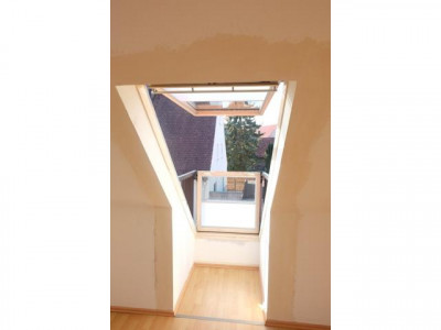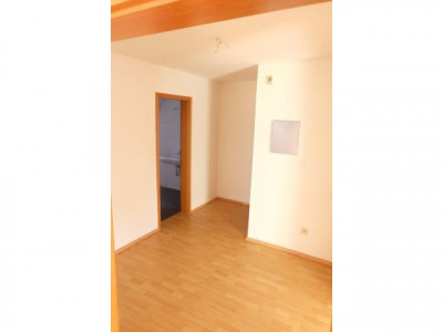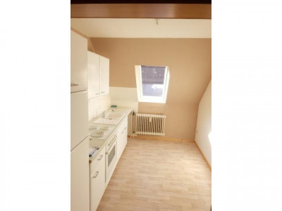 Die Wohnung befindet sich im 2. Obergeschoss eines Mehrfamilienhauses mit nur wenigen Wohneinheiten.Trotz der Tatsache, dass es sich bei diesem Objekt um eine Dachgeschosswohnung handelt, sind genug Stellflächen vorhanden, da der Kniestock relativ hoch ist.Flur, Schlafzimmer und Kinderzimmer sind mit einem Laminatboden ausgestattet. In der Küche befindet sich ein PVC-Boden in Laminatstruktur.Das Badezimmer wurde komplett renoviert. Die Sanitäreinrichtung, bestehend aus Dusche, Wanne, Waschtisch und WC wurden dem modernen Stil der Fliesen angepasst. Der Waschmaschinenanschluss befindet sich im Bad.In der Wohnung befindet sich eine helle Einbauküche, die dem Mieter zu Nutzung überlassen wird.Um den fehlenden Balkon annähernd zu ersetzen, hat sich der Vermieter etwas ganz Besonderes einfallen lassen. Im Wohnzimmer wurde ein neues Fenster mit einem balkonartigen Austritt eingebaut. Dies bringt Sie der Sonne zumindest ein Stückchen näher.Im Untergeschoss des Hauses befindet sich eine Kellerabteil.Zu Wohnung gehört auch noch ein Außenstellplatz.