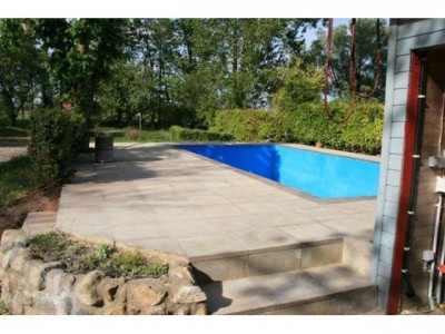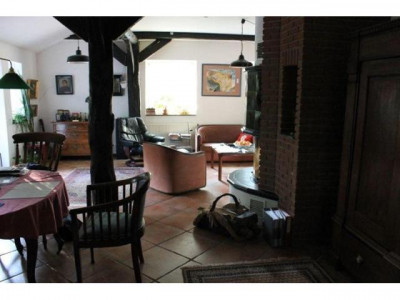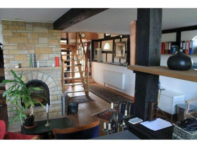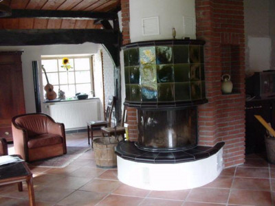 Insgesamt hat der Wohn- und Kochbereich 61qm. Ital. Fliesen, zusätzliche Fußbodenheizung und zentral einen großen Kamin.