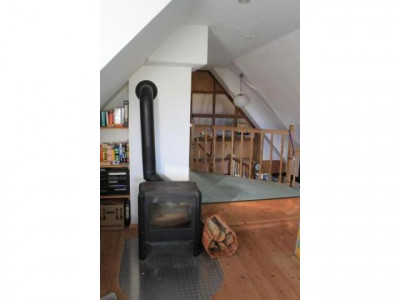 Im OG befindet sich ein großer Wohnraum mit dän. Kaminofen und Blick über die Felder.