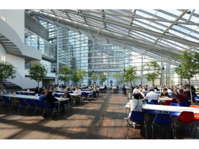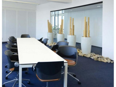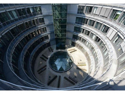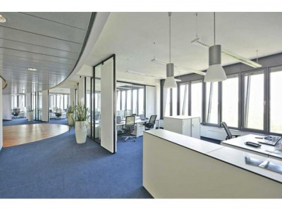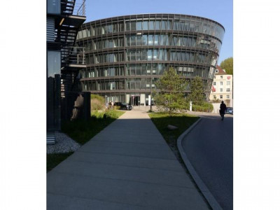 Das Gebäude besticht durch eine außergewöhnliche und gleichzeitig gut durchdachte Architektur. Der sechsgeschossige, runde Baukörper verleiht dem Gebäude ein besonders markantes Aussehen, das es zum repräsentativen Standort für jedes Unternehmen macht. Die doppelschalige Konstruktion der Außenfassade ermöglicht nicht nur eine natürliche Belüftung sondern schirmt auch Geräusche und Lärm von Außen ab. Durch die komplett verglaste Fassade und den großzügigen Lichthof in der Mitte des Gebäudes gibt es hier gleich von beiden Seiten natürliches Licht - für eine besonders angenehme Arbeitsatmosphäre. Für einen entspannten Arbeitsalltag stehen ein Konferenzzentrum, ein Bistro, eine hauseigene KiTa sowie ein Casino zur Verfügung.TG-Stellplätze anmietbar à € 120,00/Stk./mon.