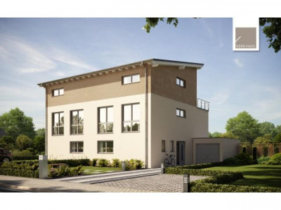 Werden Sie jetzt Besitzer dieses traumhaften Eigenheims. Dieses außergewöhnliche Architektenhaus punktet mit einer raffinierten Raumaufteilung gleich doppelt! Das Haus ist durch seine Bauweise ein Blickfang in jedem Baugebiet und als Doppelhaus auf den ersten Blick kaum zu erkennen. Das Erdgeschoss bietet einen angenehmen Platz für das alltägliche Leben - sowohl für eine 4-köpfige Familie als auch für Paare. Die bodentiefen Fenster spenden viel Tageslicht und bieten ein angenehmes Raumklima. Im Obergeschoss spiegelt sich diese Freundlichkeit in den beiden Räumen wieder, die als Kinder- oder Gästezimmer, aber auch als Home-Office genutzt werden können. Ein eigenes Badezimmer für die Kinder oder Gäste ist ebenfalls vorhanden. Das Dachgeschoss lässt keine Wünsche offen - neben dem großen Schlafbereich gibt es ein eigenes Badezimmer für diese Etage sowie einen Ankleidebereich. Vom Bett aus kann der Hausherr schon am frühen Morgen die Sonne genießen, denn dieses Dachgeschoss bietet einen herrlichen Blick auf die Dachterrasse. Der Bauherr kann sich zwischen einer Holz- oder Putz-Außenfassade entscheiden.Dieses Haus wird nach Ihren individuellen Wünschen geplant und ausgestattet!