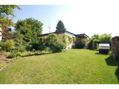 Die großzügige Bauweise der 70er-Jahre wird bei diesem Bungalowbau durch die verantwortungsvolle Pflege während der letzten zehn Jahre glücklich ergänzt. Das Dach wurde komplett erneuert, Bäder renoviert, Fenster ausgetauscht und der Garten sehr liebevoll mit südlichem Charme angelegt. In dem hellen großen Flurbereich nimmt ein großer Einbauschrank sämtliche Utensilien großzügig auf. Der öffentliche Teil des Hauses überzeugt mit offener Küche, separatem Hauswirtschafts- oder Büroraum und sehr großzügigem Wohn-Essbereich mit Zugang auf die große überdachte Terrasse, die schon an den ersten warmen Tagen geschützte Gemütlichkeit im Freien ermöglicht. Von hier hat man einen wunderbaren Blick in die weite Ferne, wo der ICE lautlos in der Größe einer Modelleisenbahn vorbeigleitet und Felder in Wälder übergehen - ein weitläufiger Ausblick zum Entspannen. Gartenseitig des Eingangsbereichs liegen die beiden, durch ein gemeinsames Spiel- oder Studierzimmer verbundenen Kinderzimmer und das Elternschlafzimmer mit Ankleide und Zugang zur Hauptterrasse. Etwas versteckt hinter dem Haus befindet sich die zweite Terrasse, die einem Trampolin oder Familienpool großzügig die perfekte Fläche bietet. Familienbad und Gäste-Toilette ergänzen das Raumangebot auf einer Etage. Wäre hier nicht schon alles vorhanden, würde man erahnen, was der Keller birgt: Nicht nur Heiz-, Trocken, Werk- und Stauräume sowie den Zugang zur Garage, sondern auch einen sehr großen Raum mit zwei großen Fenstern und Blick auf die Gartenwiese, wiederum eine Toilette und ein großes Bad, das sich perfekt für den Einbau einer Sauna anbietet, Fitness- und Hobbyraum sind in der Vollunterkellerung ebenfalls mühelos unterzubringen. Auch zur Unterbringung von Kurzzeit-Gästen geeignet.
