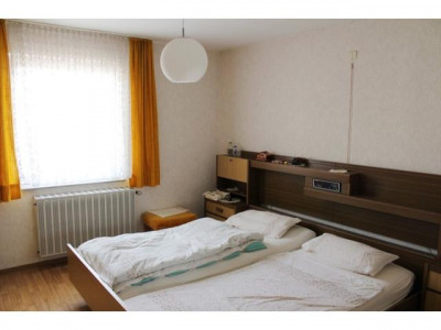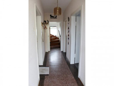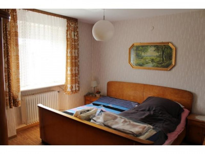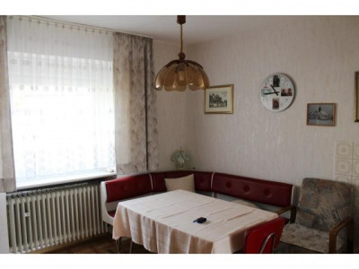 Das ursprünglich 1950 erbaute freistehende Einfamilienhaus liegt in ruhiger Ortsrandlage mit Blick in die Natur. Nach Betreten der Immobilie schreiten Sie über den Terrazzoboden in den Flurbereich, von hier aus gelangen Sie linke Hand in die Küche. Die geräumige Küche bietet ausreichend Platz und der angrenzende Abstellraum bietet Ihnen zugleich nützlichen Stauraum. In Ihr lässt sich wunderbar der Essbereich integrieren und zudem verfügt diese außerdem auch über einen Kaminanschluss. Gegenüber der Küche befindet sich rechte Hand vom Flur aus, das 2009 renovierte und sanierte Tageslichtbad. Das zeitlose und moderne Bad ist ausgestattet mit einem praktischen Spiegelschrank einem Waschmaschinenanschluss sowie einer bodentiefen Dusche. Wiederum rechte Hand vom Flurbereich aus befindet sich der Wohnbereich. Geradeaus gelangen Sie über das Treppenhaus, welches über eine geschmackvolle Holztreppe verfügt in das Obergeschoss. Oben angelangt befindet sich direkt rechts, vom L-förmigen Flurbereich ein weiteres Tageslichtbad, welches mit einer Badewanne ausgestattet ist. Linke und rechte Hand sowie geradeaus befinden sich die zwischen 13 und 16 m² großen Schlafräume die jeweils mit einem PVC Boden ausgestattet sind. Über das Treppenhaus schreiten Sie weiter in das Dachgeschoss, der Dachboden bietet Ihnen aktuell praktischen Stauraum eignet sich jedoch auch bei Bedarf hervorragend als Ausbaureserve. Im Kellergeschoss der Immobilie befindet sich weiterer Stauraum sowie die Heizungsanlage. Die Ölzentralheizung ist 2011 erneuert worden und das Fassungsvermögen der Kunststoff Öltanks beträgt 3* 2.000 L. Der Kellerbereich verfügt zudem über einen Ausgang zur Garage und den Garten. Sowohl die Garage, wie auch die Stellplätze an der Frontseite der Immobilie bieten Ihnen und Ihrem Besuch ausreichend Möglichkeiten zum Parken. Der zum einen neben der Garage und unterhalb der Garage befindliche Garten ermöglicht Ihnen gemütliche Stunden beim Blick in die Natur über Felder und Wiesen...