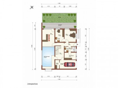 Das Untergeschoss bietet den Bewohnern ein Schwimmbad, die Garage, 3 Zimmer, ein Durchgangszimmer, ein Gäste-WC sowie eine Bar mit direktem Zugang zum Garten. Zudem ist das Untergeschoss zusätzlich über einen separaten Hauseingang zu erreichen und bietet so die ideale Möglichkeit, dieses als Büro oder Einliegerwohnung zu nutzen.