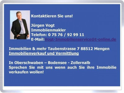 Wir suchen für unsere Kunden aus dem Raum Bad Saulgau - Sigmaringen - Pfullendorf - Mengen und Umland folgende Immobilien:+Einfamilienhäuser+Doppelhaushälften+Eigentumswohnungen+Baugrundstücke+Bauernhäuser mit großen Grundstücken+Penthousewohnungen+TerrassenwohnungenWenn Ihre Immobilie zu klein oder zu groß werden sollte bitte ich Sie sich mit mir in Verbindung zu setzen.