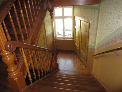 Traumhafte Maisonettewohnung in zentraler Lage von Markkleeberg-Mitte. Ebene 1: Großzügiges Wohn-und Schlafzimmer, Wohnküche mit Austritt auf Balkon und Tageslichtbad mit Badewanne und Dusche. Ebene 2: Großes Wohnzimmer mit Austritt auf die Loggia sowie Gäste-WC mit separater Dusche. Alle Räume mit Echtholzparkett. Bad und Küche mit terrakottafarbenen Bodenfliesen. Abstellkammer und Haushaltskeller vorhanden. PkW-Stellplatz steht zur Verfügung.