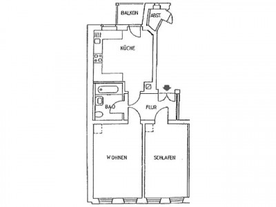 Gemütliche 2-Zimmerwohnung mit Echtholzparkett, Wohnküche und Balkon. Einbauküche vorhanden. Mieterkeller und Abstellkammer vorhanden.