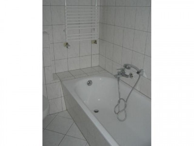 Wohnküche mit EBK und Balkon, Bad mit Wanne