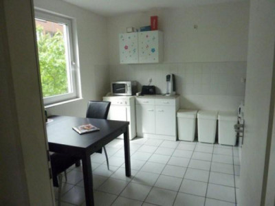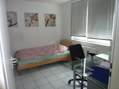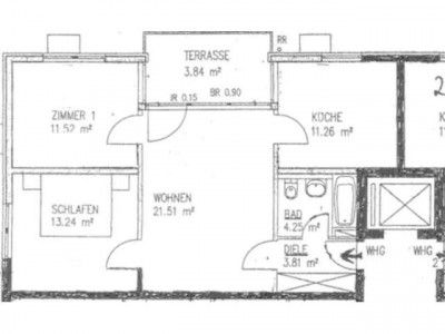 Großzügige, helle Dreizimmerwohnung mit schönem Westbalkon und Terrasse nach Süden und nach Westen.Die Wohnung liegt im 1. Obergeschoss eines in 2001 neu erbauten Mehrfamilienhauses mit Aufzug.Aus der Diele gelangt man in das große Wannenbad, das zwar fensterlos ist, aber aufgrund der hellen modernen Fliesen und dem Spiegel freundlich wirkt.Aus der Diele gelangt man dann in das 22,51 m² große Wohnzimmer mit einer breiten Fensterfront, die auch den Blick ins Grüne und die Loggia eröffnet. Bei der Küche handelt es sich um eine 11,26 m große Wohnküche.Vom Wohnzimmer erreicht man auch die beiden mit ca, 11.52 und 13,24 m etwa gleich großen Schlafzimmer.Damit ist die Wohung auch WG-geeignet. Der Balkon ist zu zwei Drittel in das Gebäude integriert und daher als Loggia ausgebildet. Hierdurch läßt sich in größerer Privatsphäre die Westsonne geniessen. Mit knapp 8 m² Grundfläche bietet die Loggia auch genug Platz für einen Tisch.