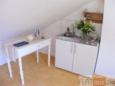 Bielefeld~Mitte. Wunderschön im Musikerviertel gelegen. Ca. 2 km östlich des Zentrums gelegen, Nähe der Sparrenburg. Großes, möbliertes und renoviertes 1-Raum Apartment mit viel Flair im DG eines Einfamilienhauses aus dem Jahre 1958. Der Raum ist mit hellem Teppichboden ausgelegt und der Schlafbereich ist durch antike Möbel abgeteilt. Eingerichtet ist das Apartment mit einem 1,50m Bett, Kleiderschrank, ein Sofa mit Sessel (hell), Tisch, Schreibtisch, Phonoschrank mit Fernseher, Regale. Eine Single-Küche ist vorhanden. Das Bad ist mit Dusche/WC und Waschbecken ausgestattet. Gerne an Wochenendheimfahrer zu vermieten. Eine Endreinigung in Höhe von 90,00 wird fällig. Nichtraucherwohnung. Miete inkl. aller Nebenkosten und pauschal. 1) Energiebedarfsausweis. 2) Energieverbrauch: 263,7 kWh/(m²a). 3) Energieklasse: H. 4) Energieträger: Gas, Strom-Mix. 5) Baujahr: 1956 / Umbau u. Modernisierung 2008.