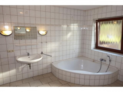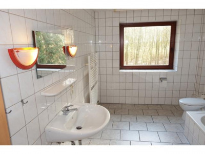 Diese Ein / Zweifamilienhaus besticht durch seine Größe und die außergewöhnliche Lage am Waldrand!Von der Diele im Erdgeschoss aus, erreichen Sie eine Vielzahl von Räumen!Durch das verbinden des Wohn- Ess- und Küchenbereiches ist 50 m² großes Familiendomizil entstanden, auch bei Großfamilien findet jeder seinen Platz. Desweiteren erwarten Sie im Erdgeschoss drei Schlafzimmer, ein Vollbad mit zwei gegenüberliegenden Waschbecken, ein Hauswirtschaftsraum, eine Gästetoilette und ein Abstellraum. Über eine massive Treppe gelangen Sie zum Obergeschoss und auch hier bleiben keine Wohnwünsche offen, denn lichtdurchflutete Räume mit einer angenehmen Atmosphäre, erwarten Sie auch hier!Das Obergeschoss bestehend aus 3 Schlafräumen, einem Bad mit Dusche, einem Abstellraum, dem Heizungsraum und als Highlight haben Sie hier ein Freizeit / Hobbyraum zur freien Gestaltung. Alle Räume dieser außergewöhnlichen Immobilie sind ausgestattet mit Isolierverglaste Fenster, so dass das Tageslicht und die Sonne überall Einzug hält!Genießen Sie den Sommer auf der überdachten Terrasse oder relaxen Sie im Garten mit Blick auf das angrenzende Waldstück, den hier ist dies ohne weiteres möglich!!!Sie suchen eine außergewöhnliche Immobilie mit einem großzügig geschnittenen Grundstück, einer relaxten und schönen Lage, dann sind Sie hier genau richtig!!!Link für den 360° Rundganghttp://www.360-grad-immobilien.com/Immobilien-Zeit/1001264