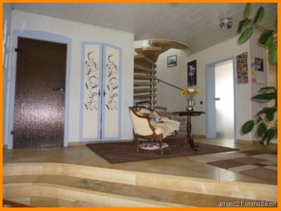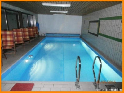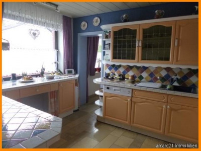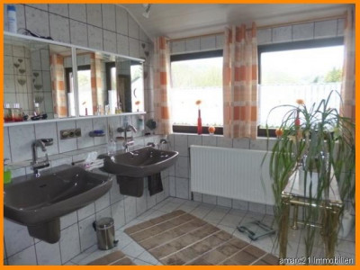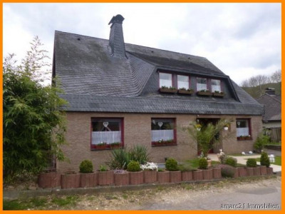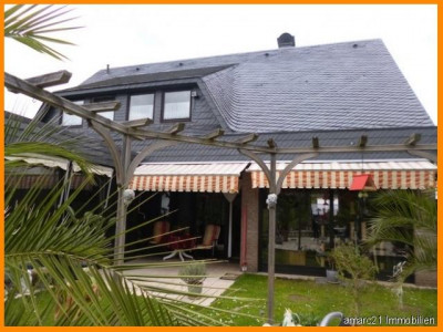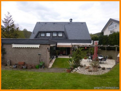 Eine herrliche Rarität ist dieses exklusive Einfamilienhaus im Landhausstil. Diese 1980 erbaute Eifelvilla mit einem Vollgeschoss, einem Dachgeschoss und einem Vollkeller im angesagten Split-Level im Erdgeschoss, großzügigen Zimmern im Dachgeschoss, Schwimmbad und Wellnessoase wird Sie und Ihre Familie begeistern. Das freistehende Einfamilienhaus wurde in Massivbauweise 1980 auf einem etwa 760 m² großen Grundstück errichtet und liebevoll familiengerecht ausgestattet. Neben der modernen Haustür bieten große Fensterfronten rundherum einen ebenso formschönen, wie praktischen Kontrast und ergänzen die Räume im Erd- und Obergeschoss auf eine elegante und filigrane Weise. Aufteilung:Die großzügige Beletage mit hochwertigen Steinböden - Solnhofener Belag - ist wie folgt aufgeteilt: Über eine angenehme, großzügige Diele, die fließend in den Wohnbereich übergeht, betreten Sie das Haus. Auf der linken Seite finden Sie eine helle Küche, die ebenfalls fließend - aber dennoch separiert - in den Essbereich übergeht. Vis à vis des Eingangs, über die lichterfüllte Diele, finden Sie ein überaus weiträumiges Wohn-/Esszimmer mit gemütlichem Kamin, bodentiefen Fenstern und 2 Terrassen.Ein gemütlicher Kamin und das etwas tiefer liegende Wohnzimmer - im Split-level über zwei Stufen optisch einwandfrei integriert, lässt den Blick in den traumhaften Garten frei. Rechtsseitig vom Dielenbereich finden Sie einen großzügigen Hauswirtschaftsraum. Hier gelangen Sie über eine Wendeltreppe mit Marmorbelag in das Obergeschoss.Im rechten Flügel, hin zur Gartenseite, finden Sie Ihre Wellnessoase. Hier erstreckt sich - über einen Zwischenflur mit Gäste-WC, Zugang zur Doppelgarage und zur trendigen Bar - ein durch Solarenergie sparsam betriebenes Schwimmbad. Die großen Fensterfronten kann man zum Garten-/Terrassenbereich durch Schiebeelemte öffnen. Eine Wendeltreppe in das Untergeschoss führt Sie in den weiteren Wellnessbereich mit Dusche, Saunaanschluss und Ruhebereich.Im Obergeschoss befinden sich insgesamt zwei Kinder-, ein Elternschlafzimmer mit großem Giebelfenster und Balkon, ein Gäste-/Arbeits- oder Ankleidezimmer, das Masterbad und zusätzlich noch ein Gäste-WC. Das voll geflieste Kellergeschoss bietet Ihnen und Ihren Kindern ausreichend Platz für Hobby und zum Unterbringen für Dies und Das und bietet hier eine komfortabel nutzbare Fläche.Rundherum genießen Sie den Blick in den wunderbaren Garten und auf die neuwertige - im mediterranen Stil - angelegte Terrasse mit gemauertem Grill und Ablagefläche.