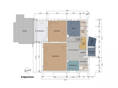 Das Haus bietet im Erd- und Obergeschoss in 7 Zimmern, Küche, Waschküche, Vollbad und 2 separaten WCs auf 153 m2 Wohnfläche viel Platz. 3 Abstell- bzw. Vorratsräume erleichtern die Unterbringung der Dinge des täglichen Alltags.Ein Highlight im Sommer, aber auch für sonnige Frühlings- und Herbsttage ist der lichtdurchflutete Wintergarten, der zum weitläufigen Grundstück nach Süden hin ausgerichtet ist. Sonnenplätze direkt im Freien bieten die vorgelagerte, großzügige Terrasse und ein Balkon im Obergeschoss.Das Dachgeschoss ist auf einer Teilfläche ausgebaut mit einem weiteren Zimmer, die restliche Geschossfläche ist ausbaufähig und bietet somit zusätzliche Platzreserve.Zusammen mit den 5 Räumen in der vollkommen trockenen Vollunterkellerung stehen insgesamt 85 m2 Nutzfläche zur Verfügung. Dazu gehört auch die beheizbare Garage, die sich im Keller des Hauses befindet. Der Garagenzugang ist bequem und witterungsunabhängig direkt vom Keller aus möglich.Die parkähnliche Gestaltung des Gartens unterstreicht den großzügigen Charakter des 824 m2 großen Grundstücks, auf dem auch ein kleines Wasserbassin seinen Platz hat und bei Bedarf Erfrischung für Kinder bietet. Aber auch erwachsene Füße freuen sich darin im Sommer über eine Abkühlung.Außer der Garage verfügt das Grundstück noch über 2 PKW-Stellplätze im Grundstückszugangsbereich, einer davon ist seitlich der Hauptzufahrt angeordnet und somit vollkommen unabhängig nutzbar.Beigefügt sind neben Fotos vom Äußeren und Inneren des Hauses auch Grundrisse aller Geschosse und ein Lageplan des Grundstücks zu finden. Die beiliegenden pdf-Dokumente enthalten 3D-Ansichten von allen Geschossen und vermitteln einen guten räumlichen Eindruck vom Inneren des Hauses.