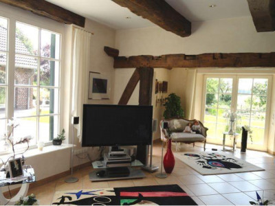 Baujahr: Der Ursprung des einst gräflichen Besitztums liegt im 18-ten Jahrhundert. Der Ausbau und die Kernsanierung erfolgte in den Jahren 2000 bis 2002 seitens des neuen Eigentümers, der als Architekt mit hohen Ansprüchen an Qualität, Ausstattung, Erhalt von wertigen Substanzen und Nutzbarkeit für sich selbst und seine Familie baute.Flächen: Das Anwesen verfügt über eine bewohn - und nutzbare Fläche von insgesamt ca. 504 m². Das Haupthaus alleine verfügt über eine Fläche von ca. 257 m² im rechten Gebäudetrakt. Dieser öffnet sich zum linken Gebäudetrakt mit einem 33 m² großen Atelierraum zzgl. Dusche und WC und Zugang zur ebenerdigen Schwimmhalle mit einer Größe von ca. 65 m². Das Dachgeschoss mit 2 Zimmern, Bad, Flur und Archiv verfügt über ca. 69 m² Wohnfläche. Eine eingebaute Küchenzeile macht die Gäste autark, oder die Wohnung auch geeignet für dauerhaft anwesendes Personal. Mit eigener Zufahrt und eigenem Zugang erreichbar ist der Bürotrakt mit ca. 63 m², der natürlich auch jede andere Nutzung zulässt. 4 vorhandene Terrassen sind nicht in die Wohnfläche einkalkuliert. Die Terrassen, ein Rosengarten und plattierte Zuwegungen erlauben den Bewohnern, die Sonne rund um das Anwesen zu genießen. Der mit Sträuchern, Bäumen, blühenden Pflanzen und einem Teich attraktiv angelegte Park ist mit 3000m² rundum eingefriedet, kann also auch noch auf eigenem Grund erweitert werden. Elektrisch bedienbare Tore öffnen sich zur Auffahrt vor den Haupteingang und zu den Garagen.