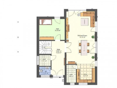Das "F 189" ist ein familiengerechtes und modernes Haus. Der große, mit viel Tageslicht erhellte Wohn-/Essbereich lädt die ganze Familie zum gemütlichen Zusammensein ein. Das große Obergeschoss bietet Eltern und Kindern traumhafte Nächte.