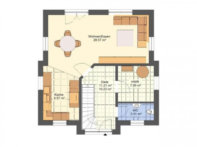 Ein besonderes Schmuckstück ist unser Einfamilienhauses "C 115". Dank der Sonneninsel können Sie auch an kühleren Tagen die Natur genießen. Der geräumige Wohn- / Essbereich im Erdgeschoss bietet Platz für die Zusammenkunft der ganzen Familie. Im Dachgeschoss befinden sich zwei Kinderzimmer sowie ein Elternschlafzimmer.